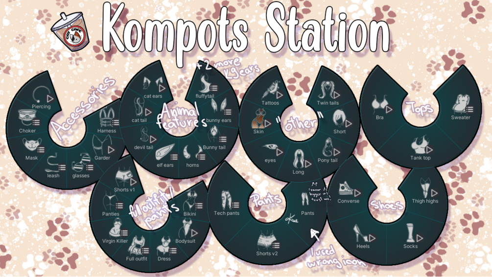 Animal features: Kitty set (ears and tail), Puppy set (ears and tail),